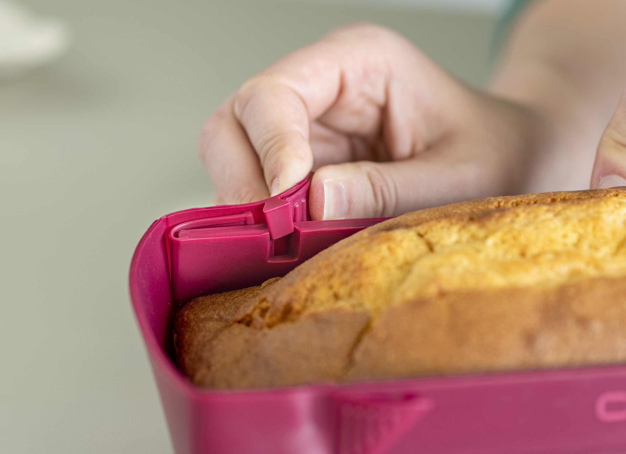 O grande diferencial da Wunderform Frame M está no seu design patenteado: em vez de removê-la com dificuldade ou de ter de desenformar cuidadosamente o seu bolo, tem apenas de desdobrar os cantos para que o interior saia perfeitamente intacto. Este mecanismo inovador elimina a necessidade de virar ou bater o conteúdo para fora da forma, o que diminui desperdícios e torna o processo muito mais limpo e organizado.