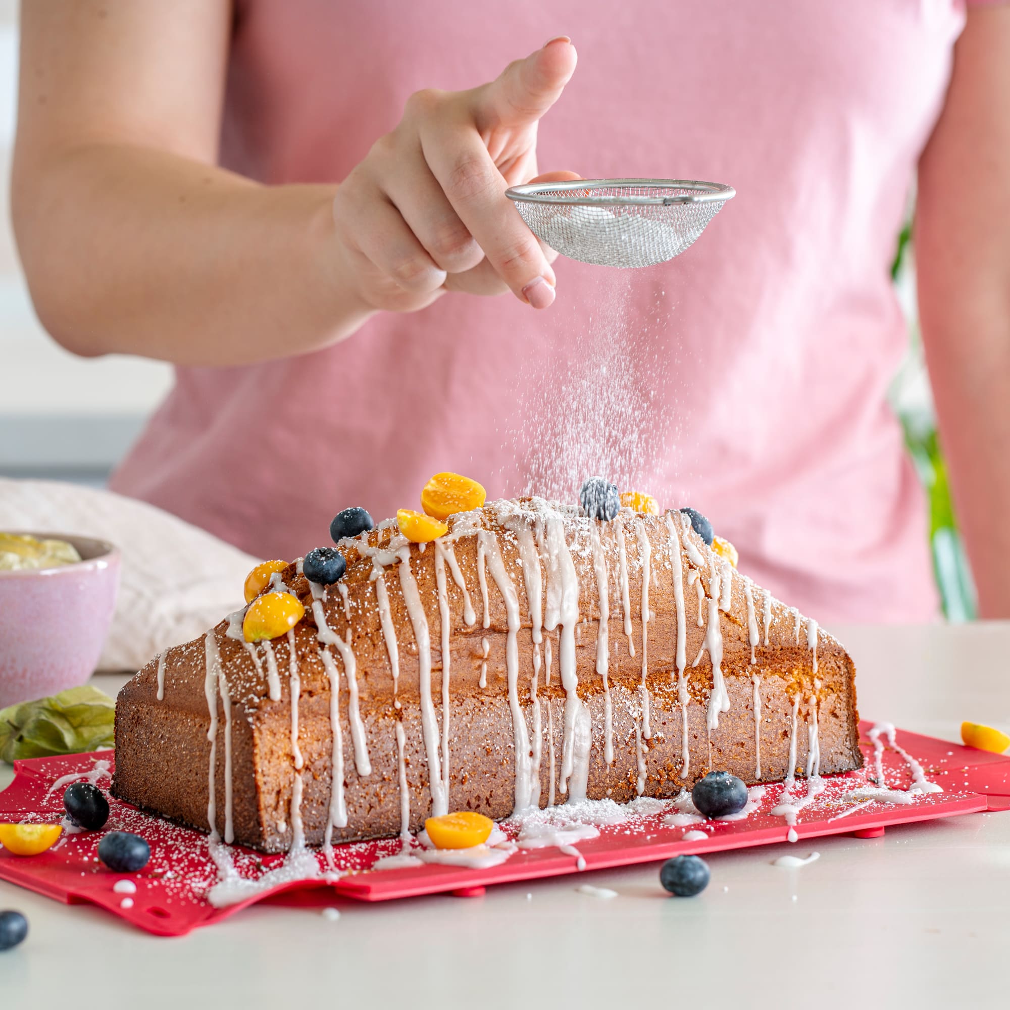 Fabricada em silicone de alta qualidade, a forma possui reforços metálicos incorporados tanto nas laterais quanto na base, garantindo estabilidade mesmo quando coloca massa líquida ou pesada no interior. Essa combinação de silicone flexível com suporte metálico significa que a forma mantém a sua estrutura durante todo o tempo de cozedura, evitando deformações e ajudando a obter resultados perfeitos em cada receita.