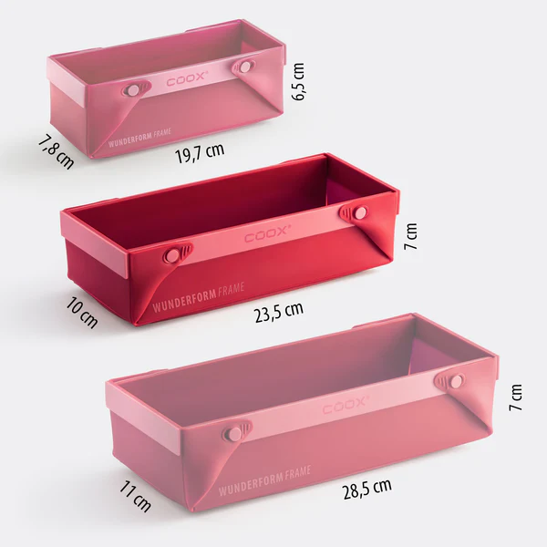 A Coox Forma Wunderform Frame M Vermelho é uma forma de silicone dobrável que eleva a forma como cozinha e faz receitas no forno. Projetada para ser prática, eficiente e versátil, esta forma representa uma solução moderna para qualquer amante de cozinha tradicional ou criativa — desde receitas clássicas de bolos e pães até pratos elaborados, sobremesas geladas e caçarolas saborosas.