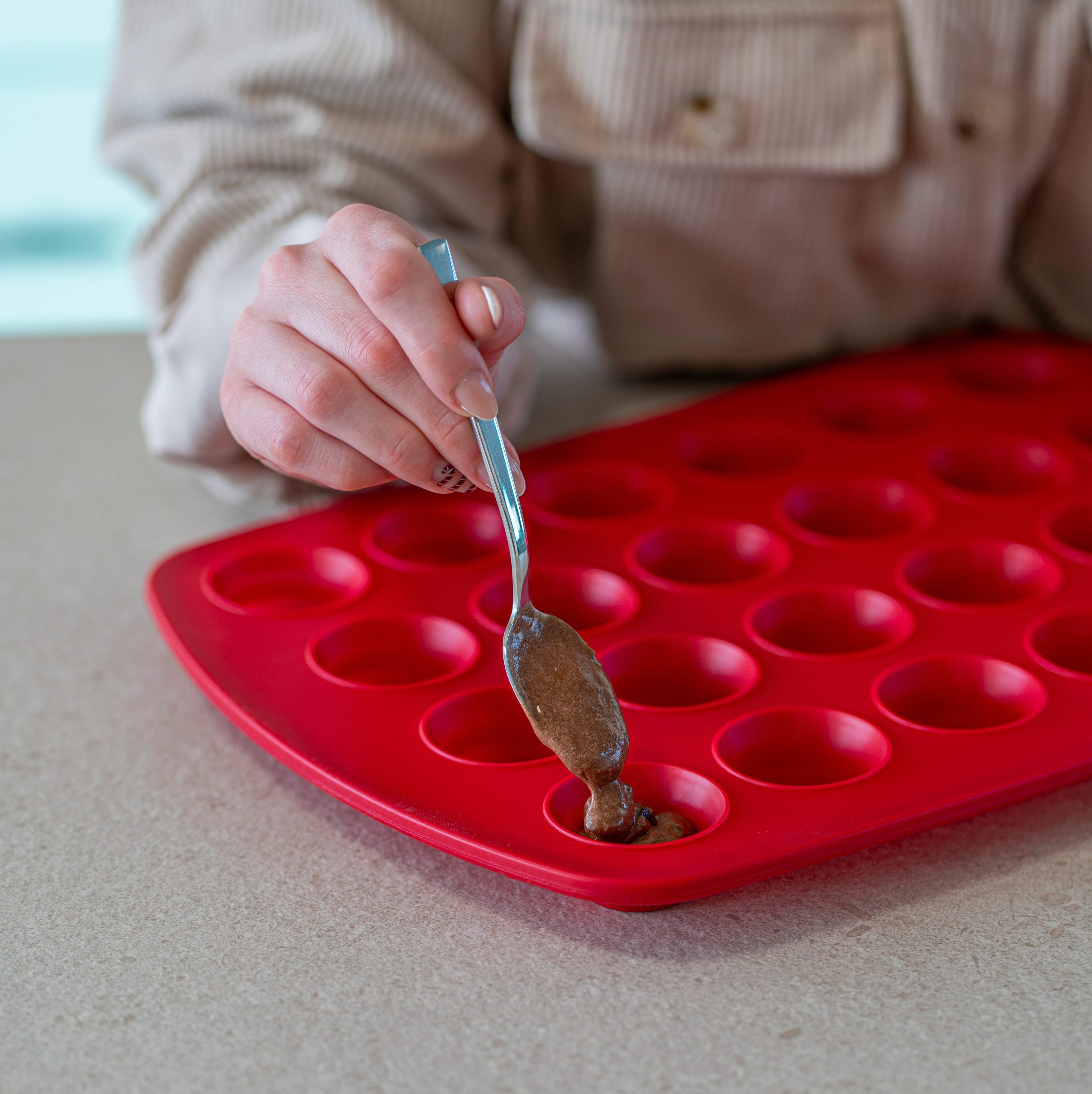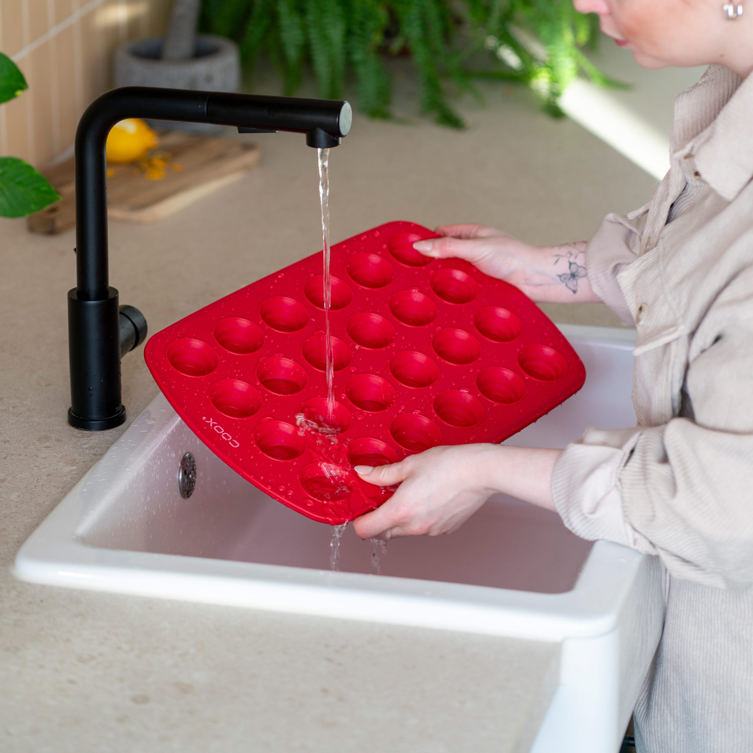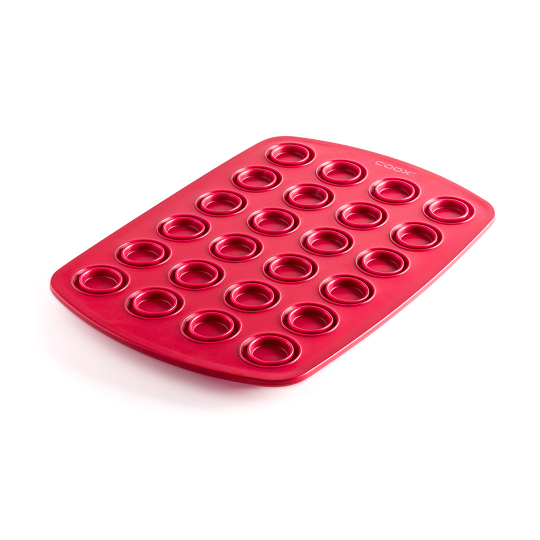 Em suma, a Coox Forma Mini Muffinform 24 cavidades Vermelho em silicone é um utensílio versátil, higiénico e fácil de usar, ideal para confecionar cupcakes, muffins e outras pequenas delícias ao forno com resultados consistentes e satisfatórios em cada fornada.