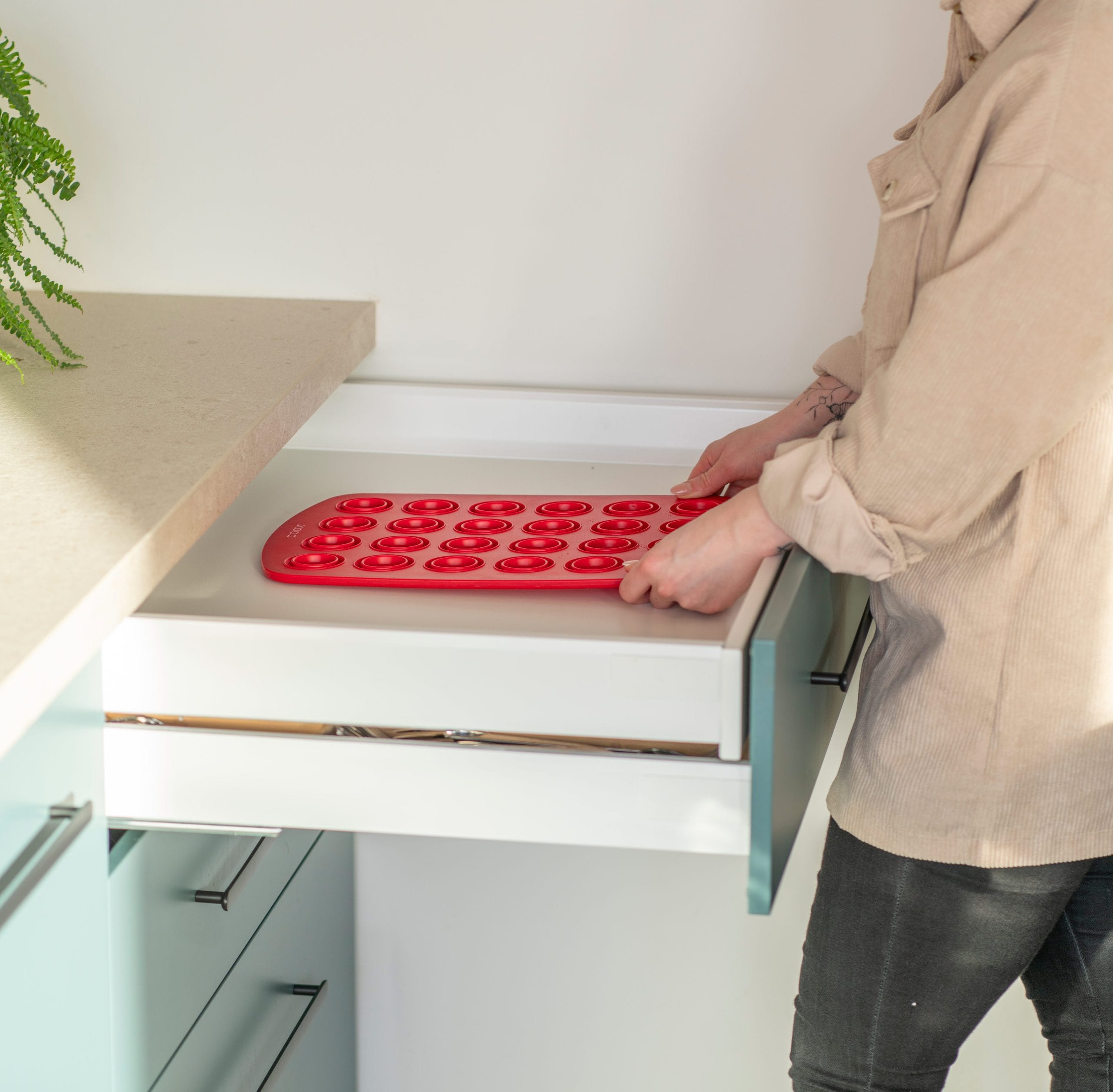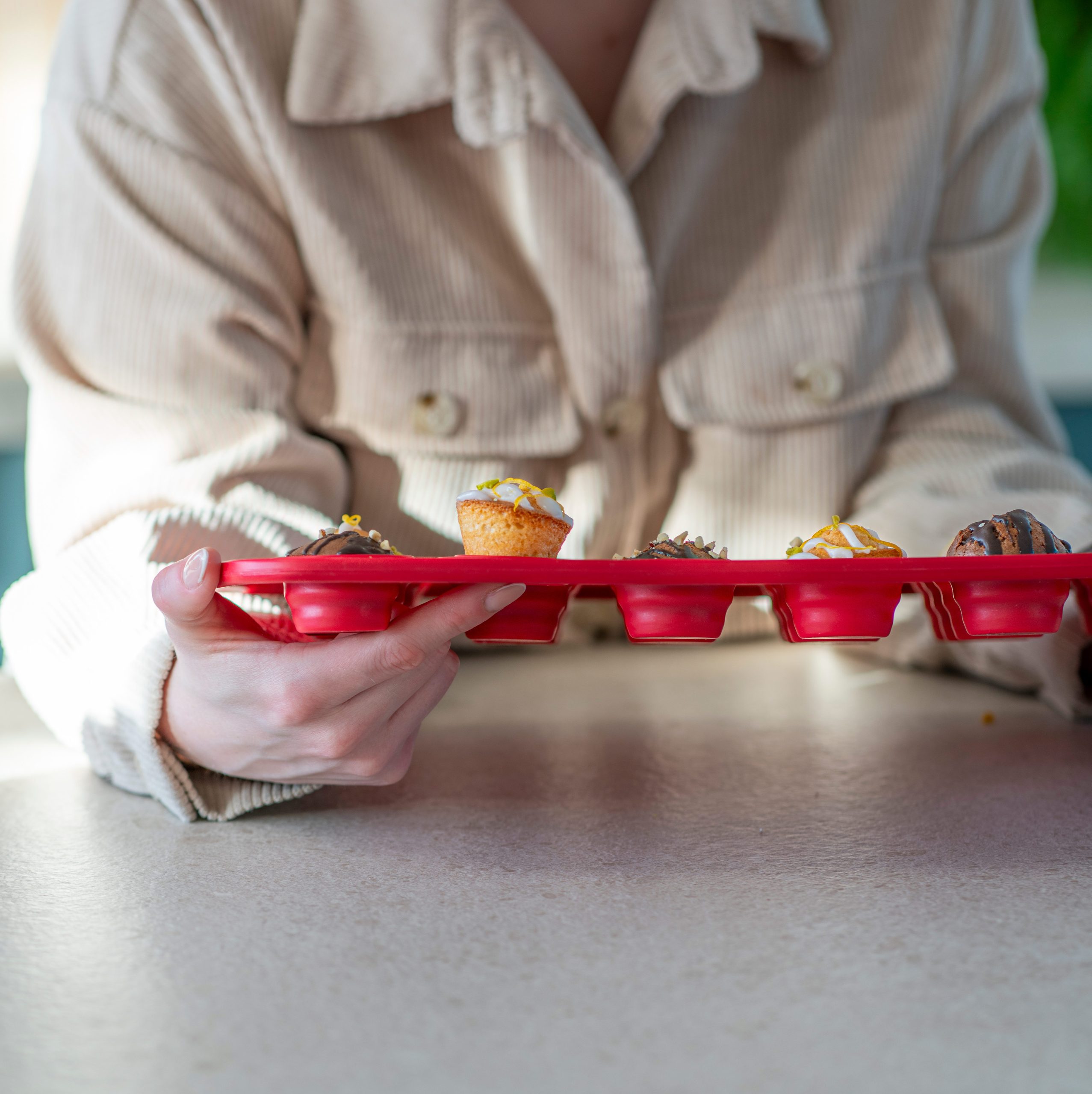 Uma das maiores vantagens desta forma de muffins é a sua superfície antiaderente natural, que facilita a remoção dos produtos acabados de cozer sem recorrer a sprays ou papéis de forno. Esta característica reduz a necessidade de adicionar gordura extra ou ingredientes para evitar que a massa pegue, permitindo que as suas criações mantenham textura e forma ideais, sem desperdício.
