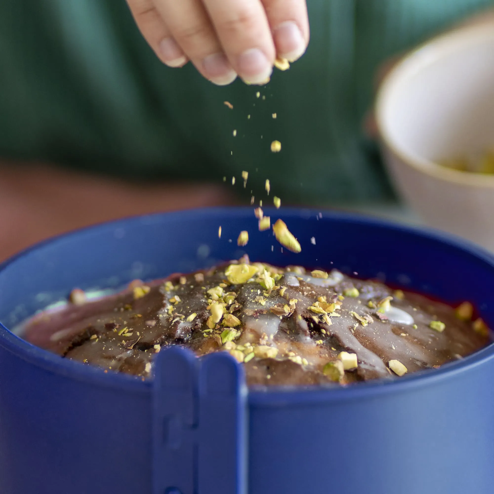 - Assar bolos, cheesecakes, tortas ou quiches uniformemente, graças à superfície antiaderente do silicone que promove uma distribuição equilibrada do calor.