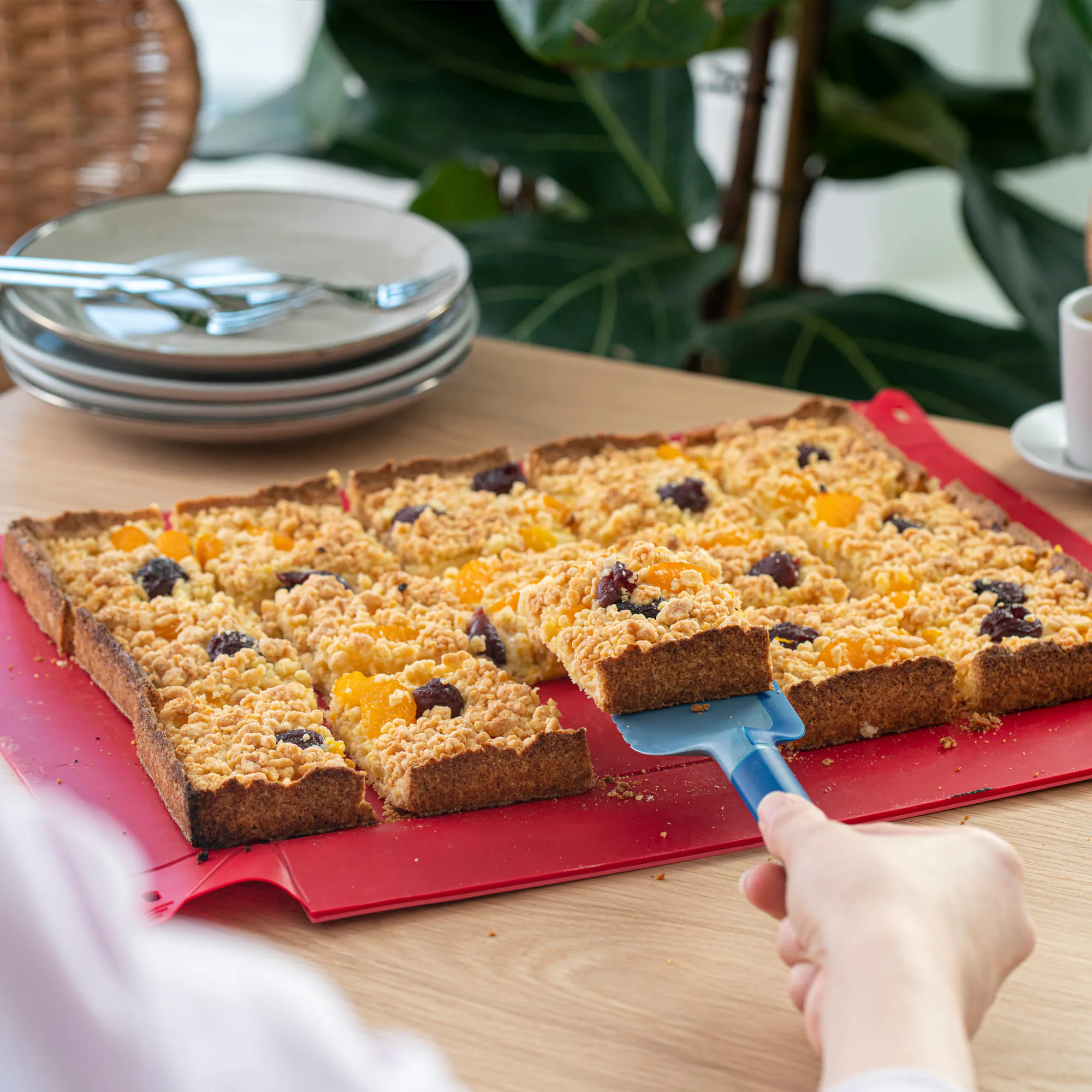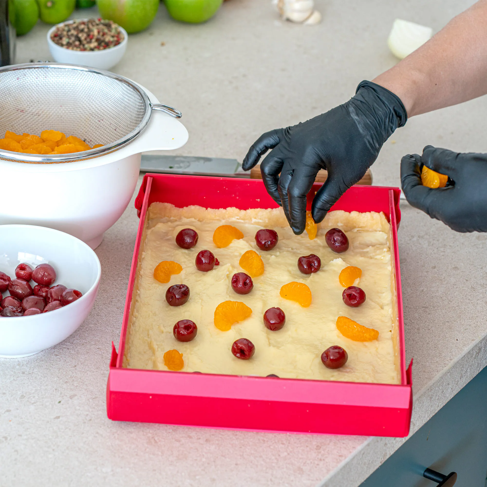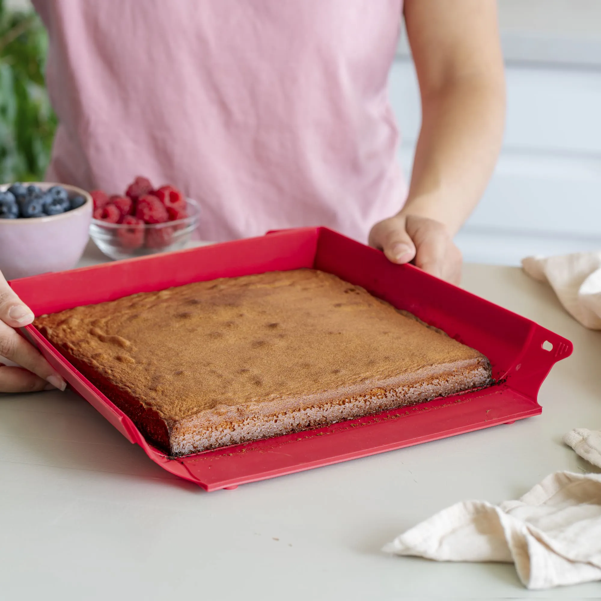 O grande destaque desta forma é a sua capacidade de ser dobrada e reconfigurada nos cantos, permitindo que cortes, sirvas e transportes os alimentos de forma simples e direta, sem necessidade de desmoldar. Esta abordagem reduz passagens desnecessárias e poupa tempo, ao mesmo tempo que melhora a apresentação dos seus pratos.