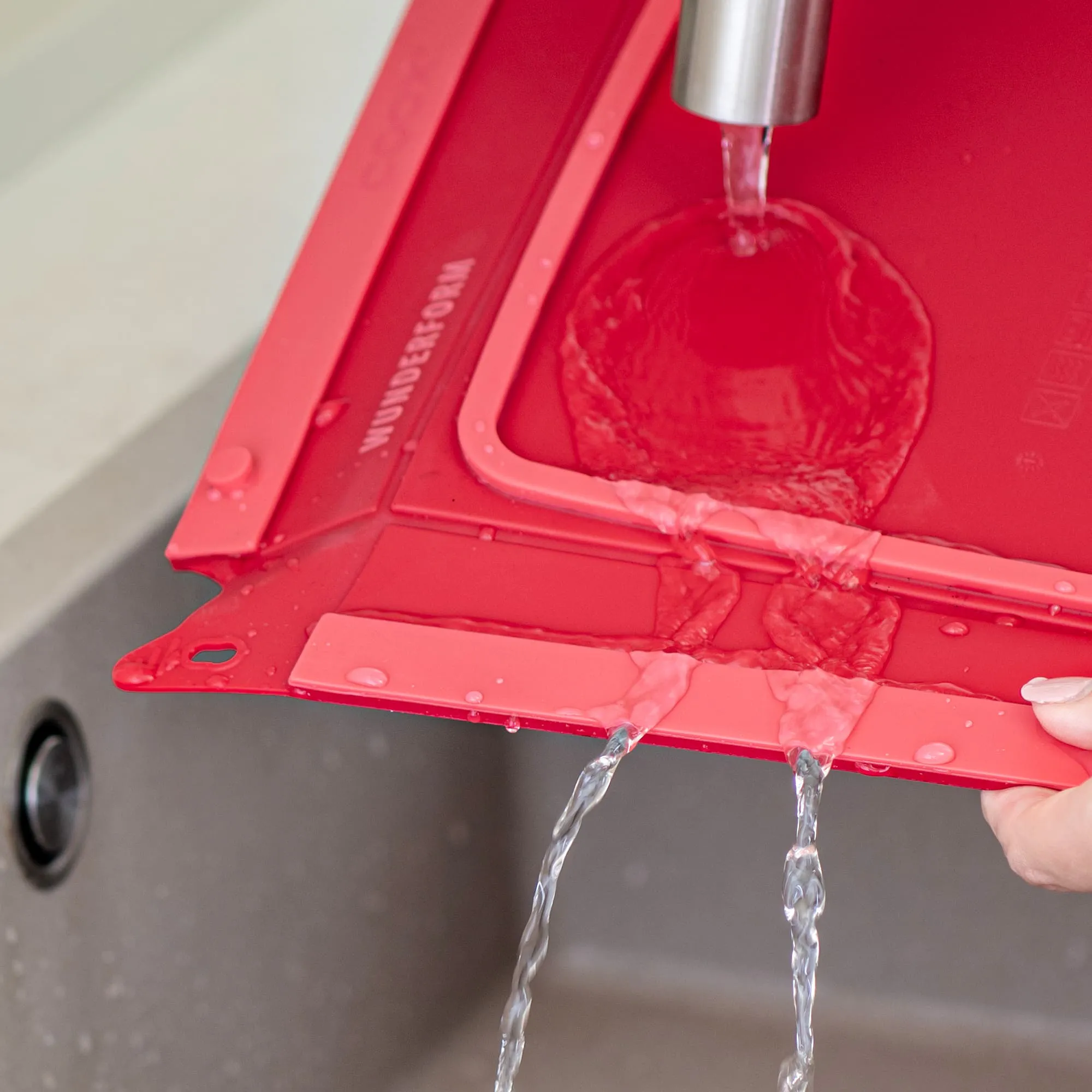 - Design que poupa espaço: ao dobrar-se, a forma ocupa menos espaço em armários ou gavetas, ideal para cozinhas com armazenamento limitado.