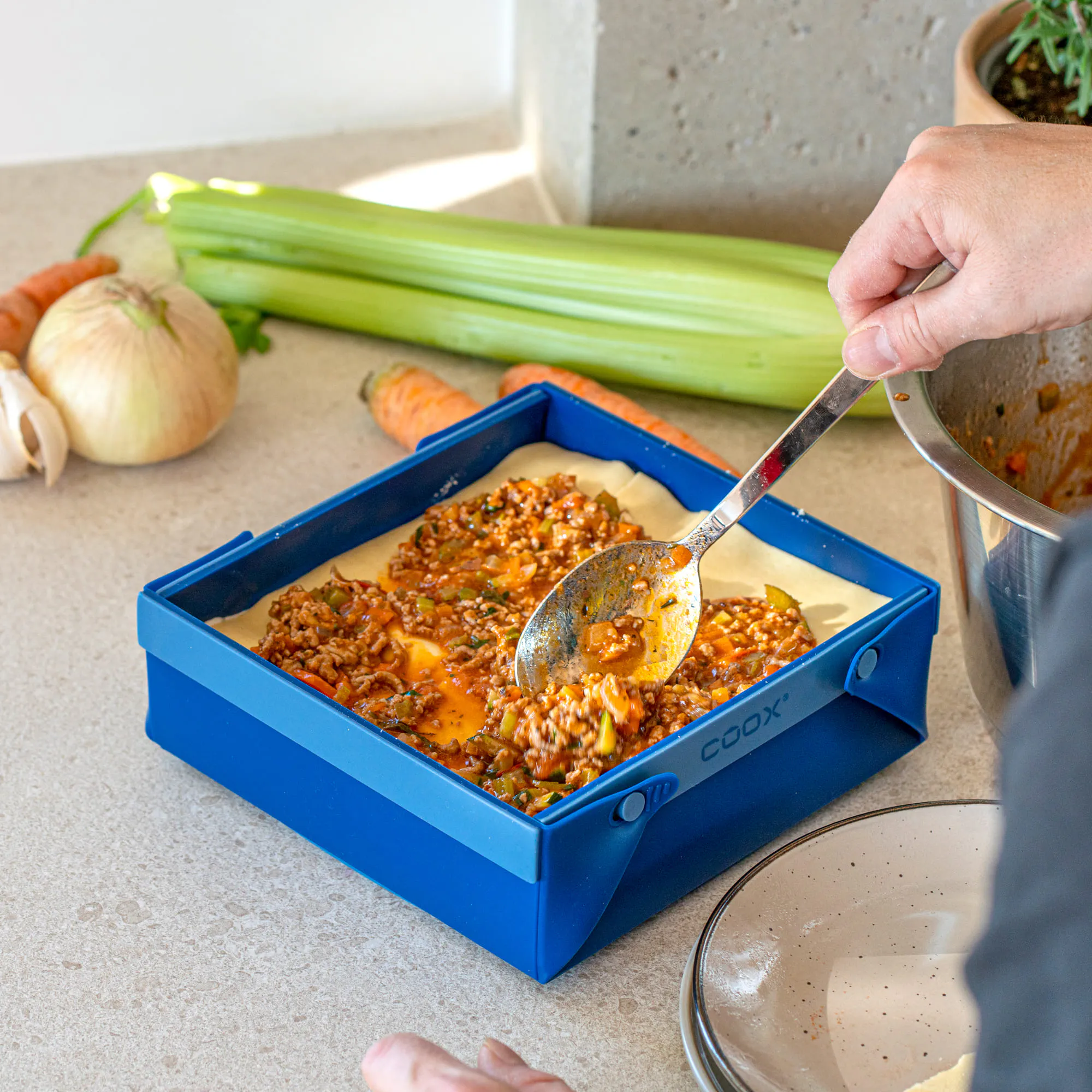A Coox Forma Wunderform Frame SQ Azul é uma peça indispensável para cozinhas modernas que valorizam praticidade, versatilidade e resultados consistentes, tornando qualquer receita ao forno mais fácil de preparar, cortar e servir com qualidade profissional.
