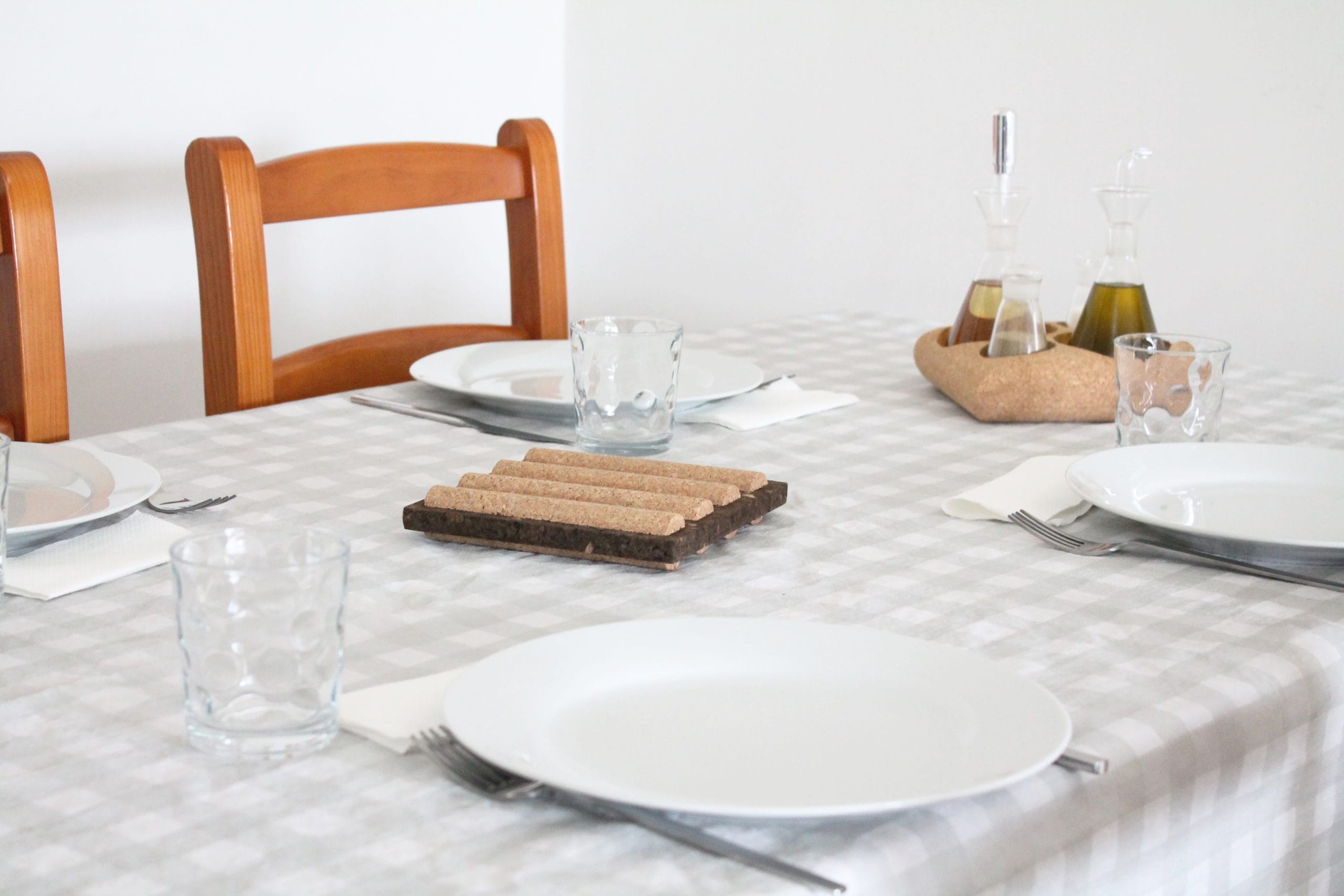 A cortiça, enquanto material base, é naturalmente isolante, resistente e leve — propriedades que a tornam ideal para bases de quentes. Além de proteger bancadas, mesas e zonas de preparação de calor direto de panelas e travessas, a cortiça cria uma superfície segura e estável em qualquer espaço de refeição. A leveza da cortiça facilita o manuseio e transporte da base entre a cozinha e a mesa, sem comprometer a robustez necessária para suportar utensílios quentes.