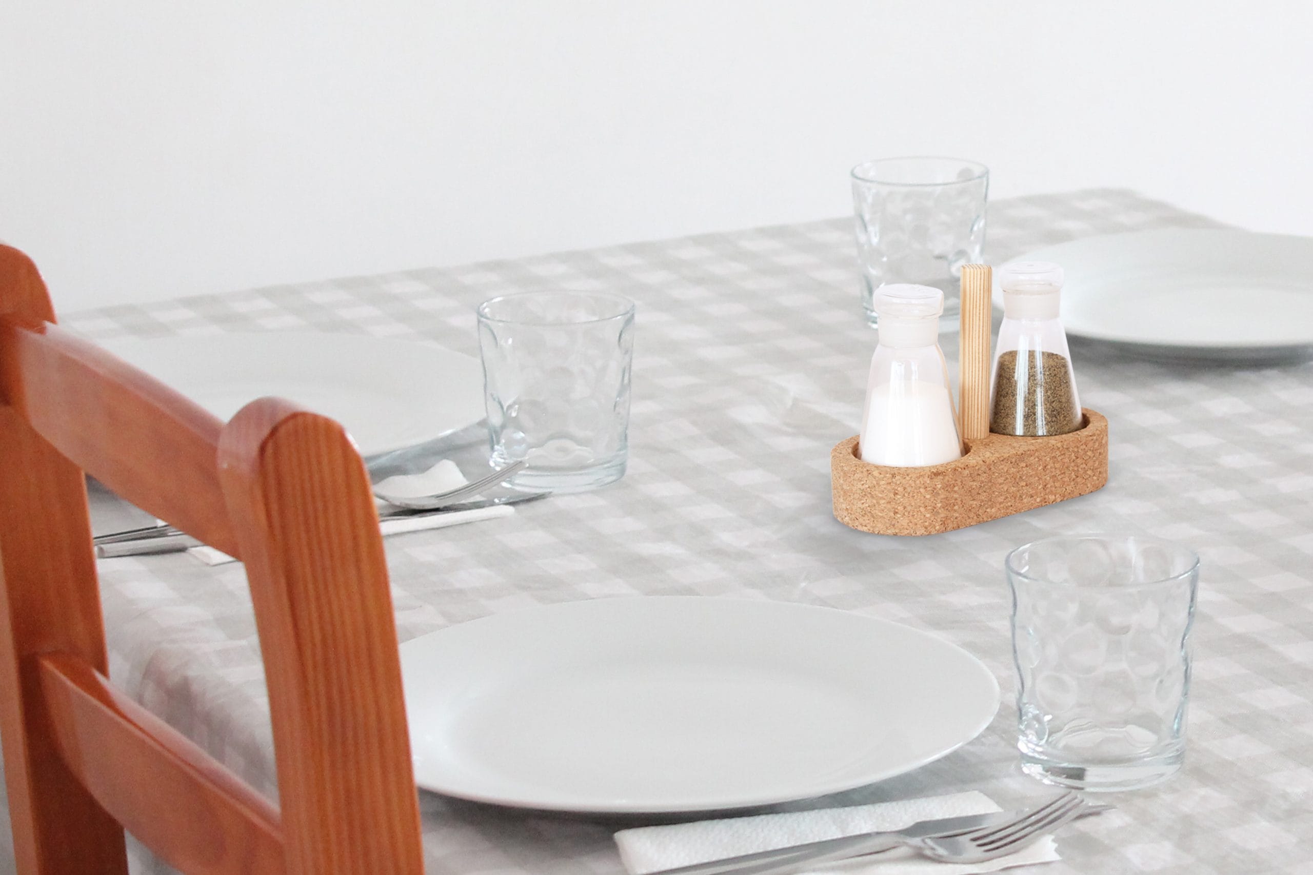 A sua função principal — facilitar o tempero com sal e pimenta de forma organizada — é complementada pela capacidade do conjunto de se integrar visualmente no espaço. A cortiça natural confere uma textura visual rica e acolhedora, que contrasta de forma harmoniosa com outros elementos da mesa, sejam estes peças de cerâmica, loiça branca ou superfícies em madeira.
