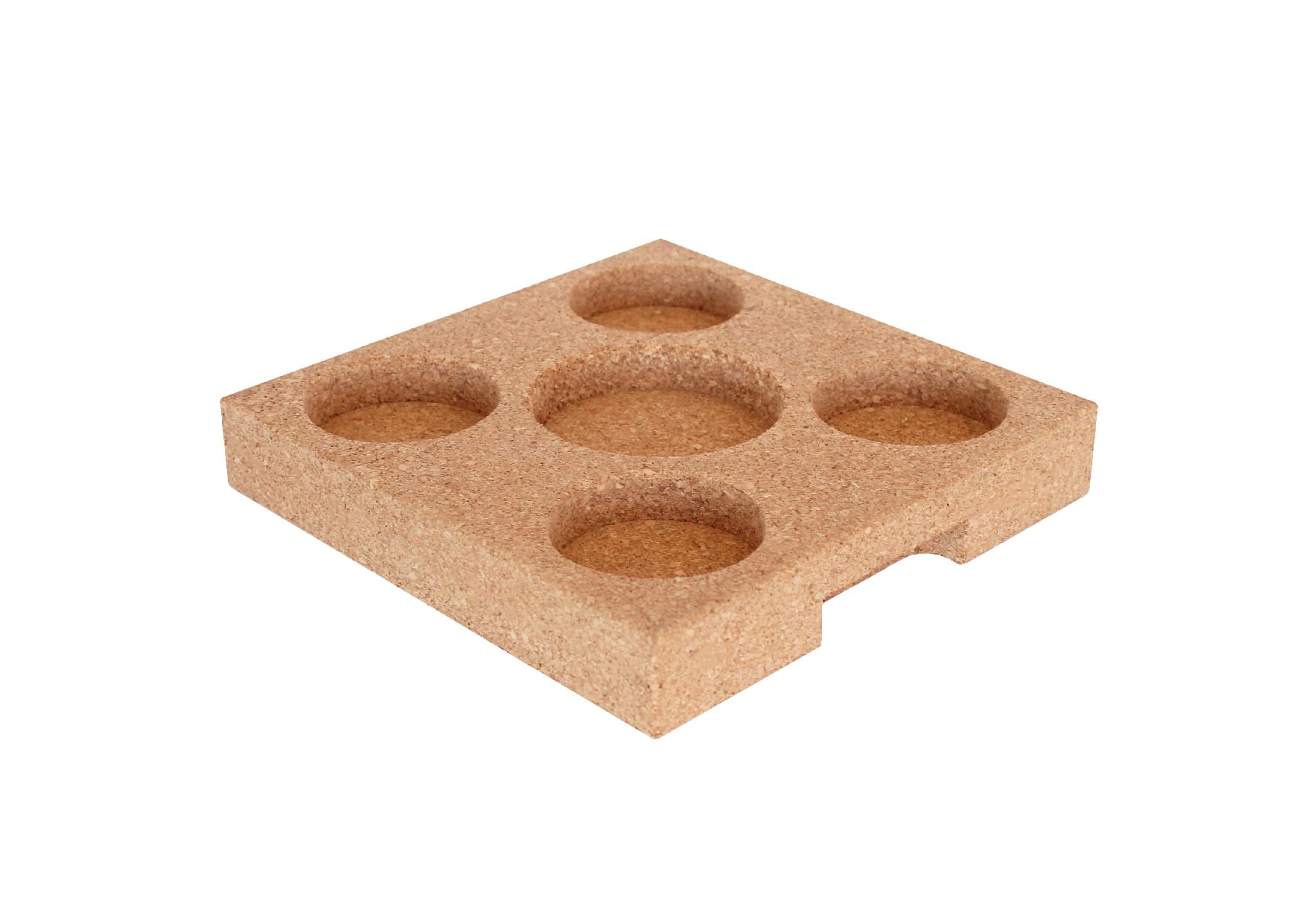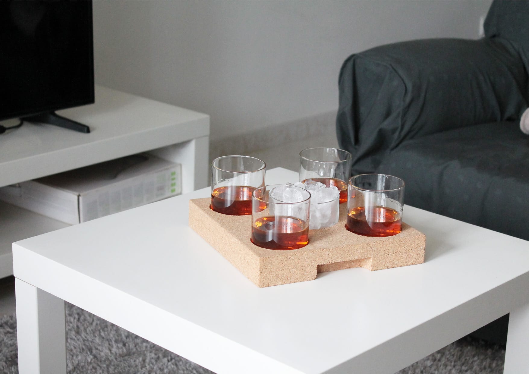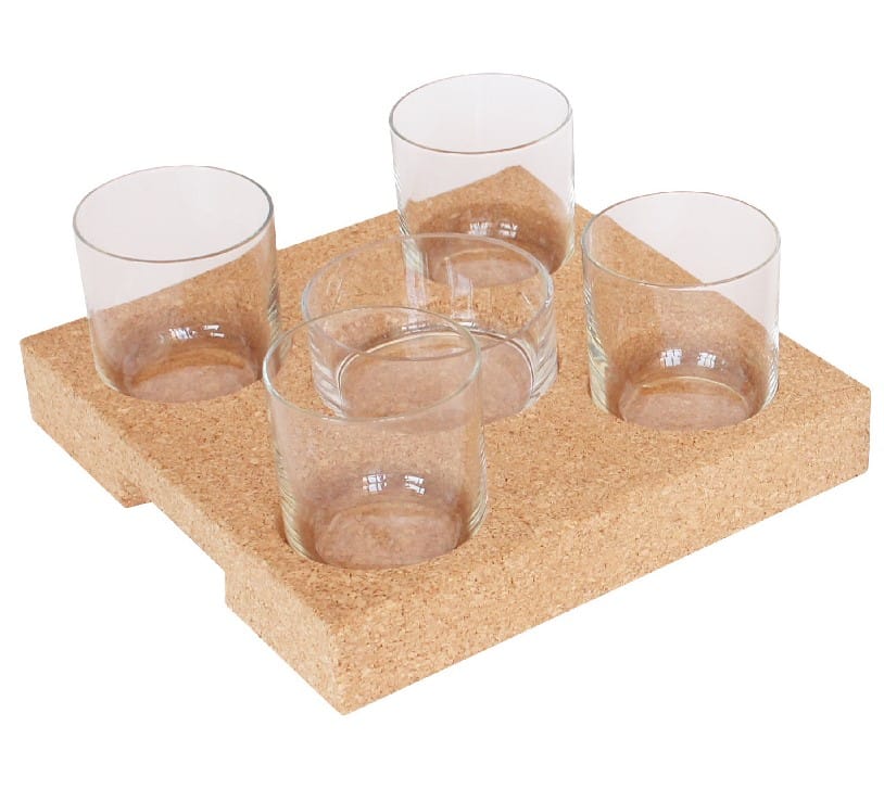 O conjunto combina um tabuleiro multifuncional com copos complementares, oferecendo uma solução versátil para servir bebidas, snacks, petiscos e outras iguarias, seja em refeições descontraídas ou em ocasiões mais formais. A cortiça, como material base, confere leveza, resistência e conforto ao toque, tornando o conjunto fácil de manipular e transportar.