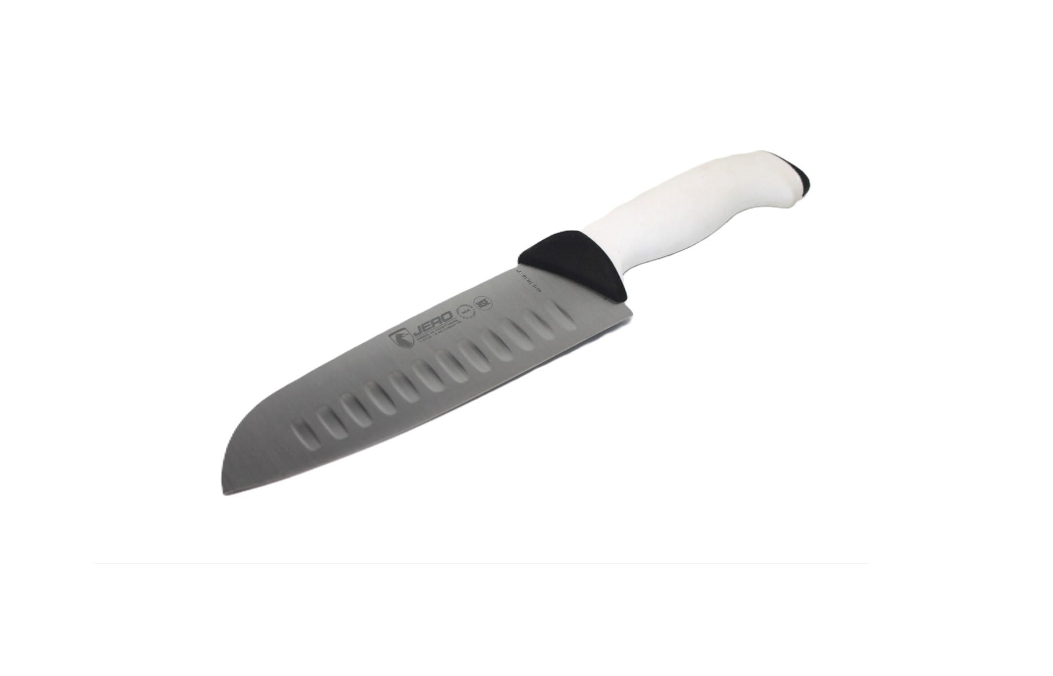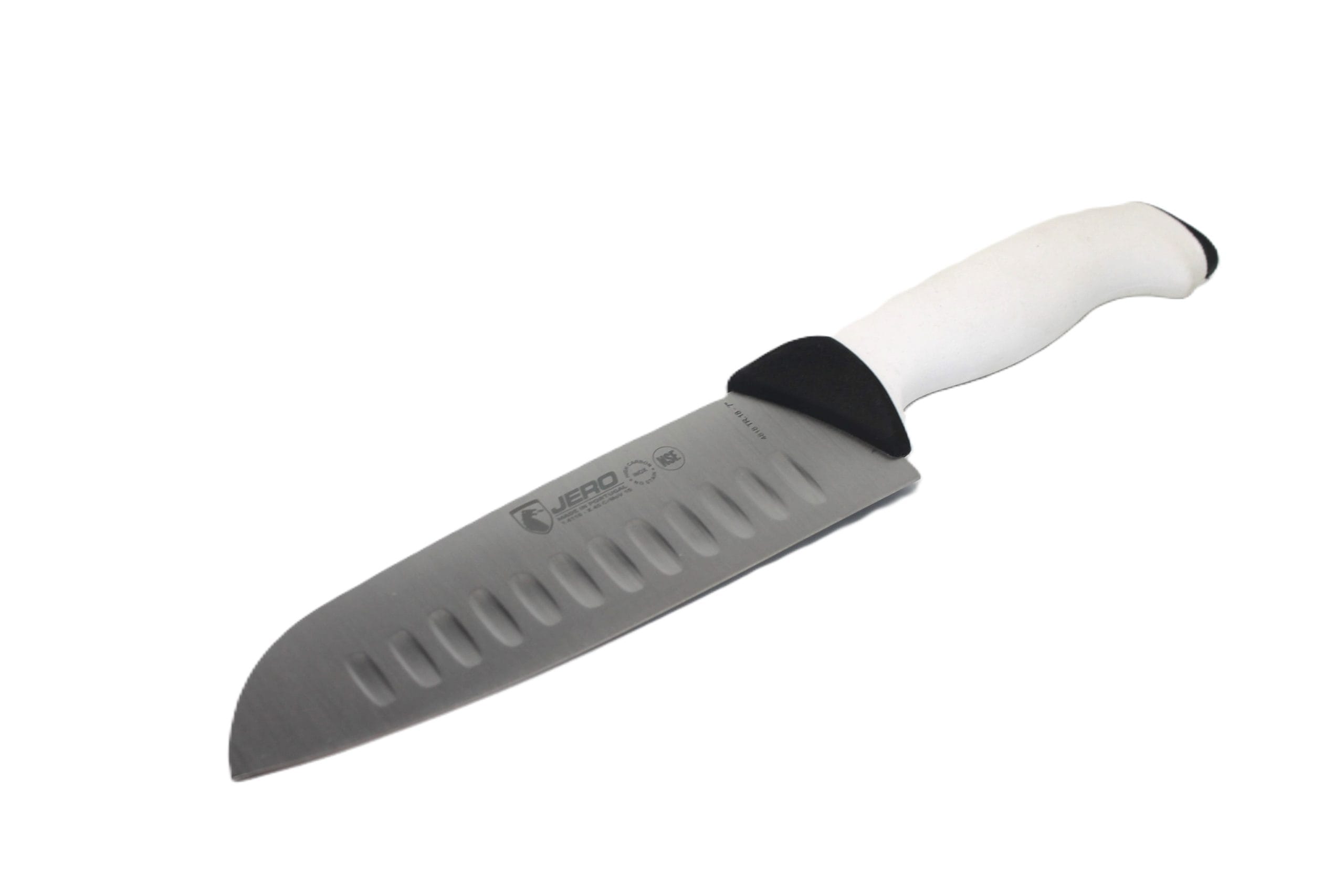A Faca Jero Santoku de 18cm com Alvéolos e cabo Santoprene branco é a escolha perfeita para quem procura desempenho excecional e praticidade no preparo de alimentos. Inspirada no design clássico japonês, esta faca combina tradição e tecnologia moderna, proporcionando uma experiência única tanto para chefs profissionais como para entusiastas da culinária.