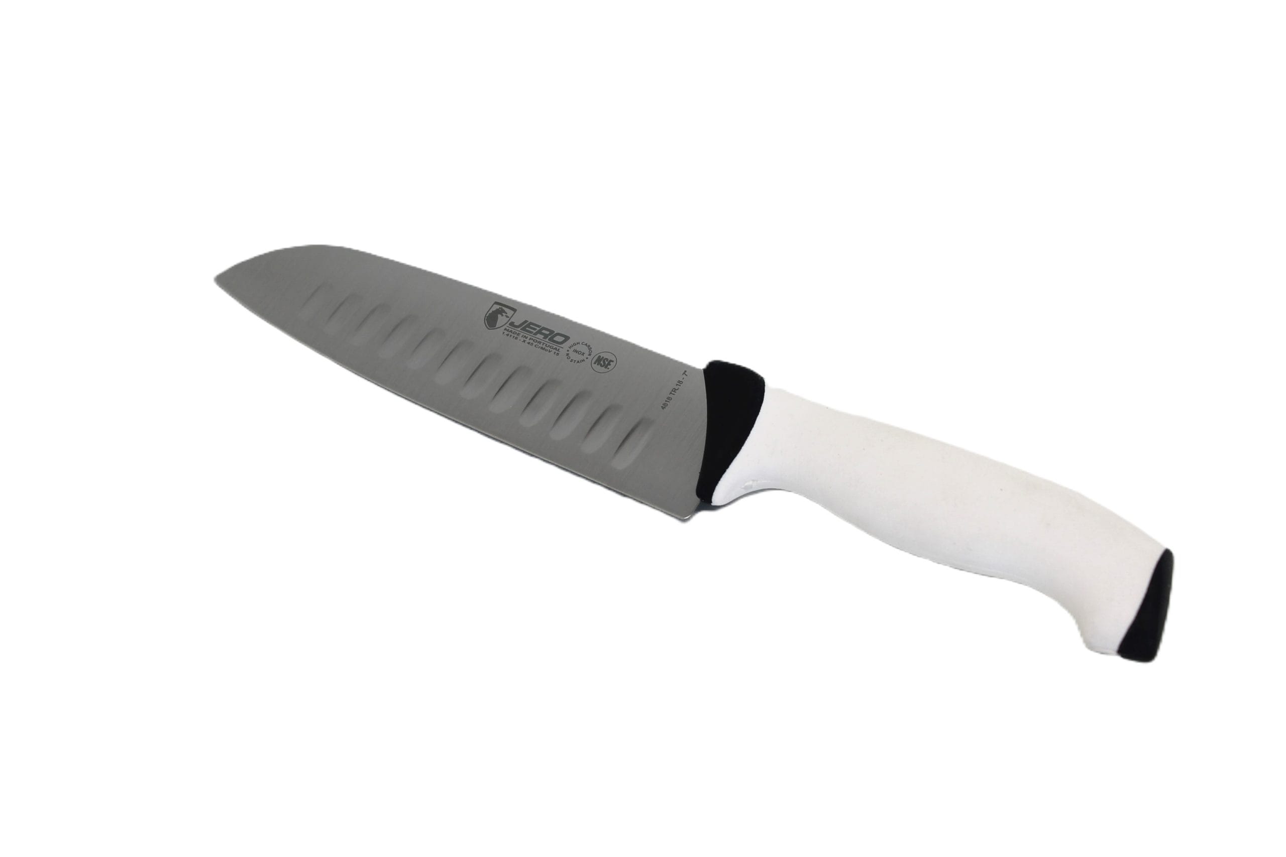 Jero Faca Santoku 18cm com Alvéolos Cabo Branco – Precisão e Versatilidade na Cozinha