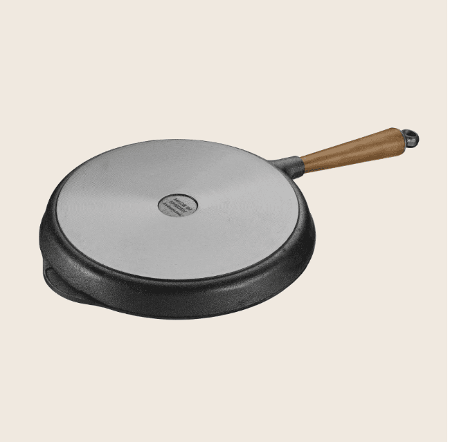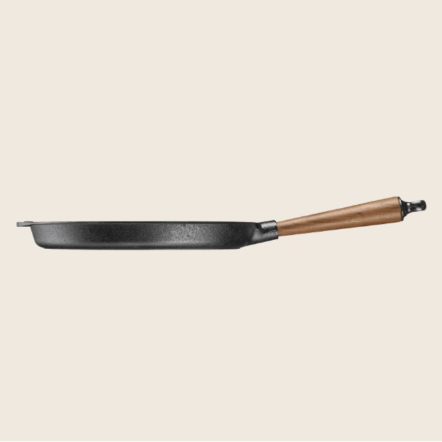 Além do desempenho técnico, o design da panela confere um toque de estética tradicional à cozinha. O contraste entre o ferro maciço e o cabo em nogueira natural faz desta grelha uma peça que pode complementar tanto cozinhas rústicas como modernas — funcionando com eficiência e estilo.