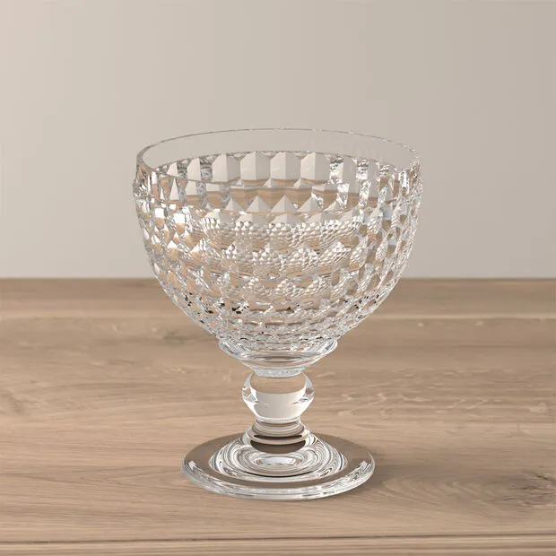 Servir uma sobremesa ou aperitivo nesta taça significa oferecer uma experiência mais cuidada: a forma e a textura da Boston Candy Dish valorizam cada ingrediente e criam uma sensação visual que eleva a refeição. A amplitude da abertura permite que as sobremesas respirem, contribuindo para uma experiência gastronómica mais interessante e envolvente.