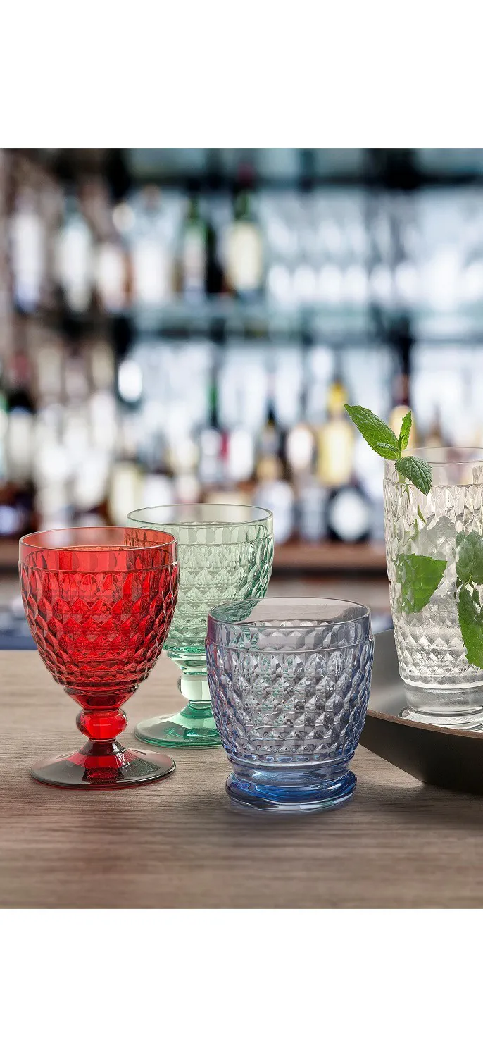 A coleção Boston prima por um design intemporal, onde a estética encontra a utilidade. O padrão facetado não é apenas decorativo: cria efeitos luminosos que valorizam o conteúdo da taça, captando e refletindo a luz de maneira atraente. Esta característica visual transforma uma simples taça numa peça de destaque na mesa, contribuindo significativamente para uma apresentação cuidada e elegante.