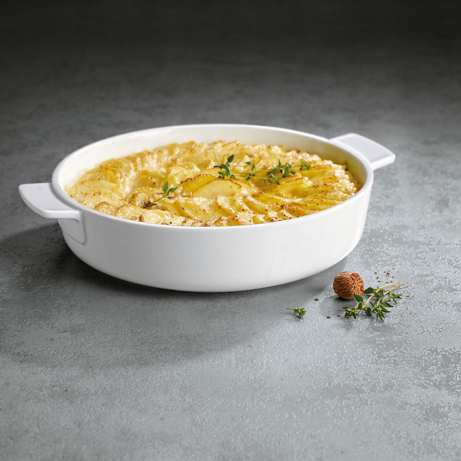 Travessa em porcelana premium branca ideal para preparar, assar e servir pratos diretamente à mesa. Com formato redondo e capacidade aproximada de 1,5 L, é perfeita para bolos, gratinados, quiches e receitas de forno. Compatível com forno, micro-ondas e máquina de lavar loiça, combina elegância e funcionalidade para uso diário.