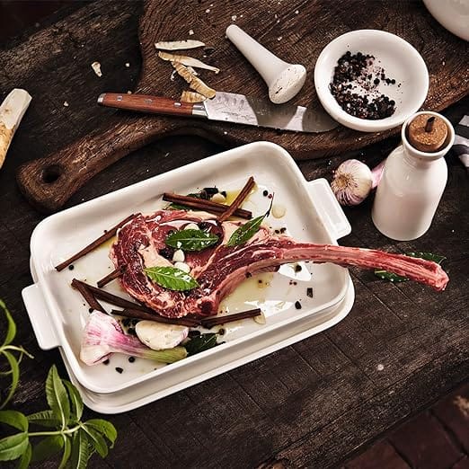 Mais do que uma simples travessa de forno, esta peça representa uma solução completa para preparar e apresentar refeições com elegância. O design sofisticado e a qualidade premium da porcelana Villeroy & Boch fazem desta travessa uma escolha ideal para quem valoriza utensílios duráveis e esteticamente refinados.